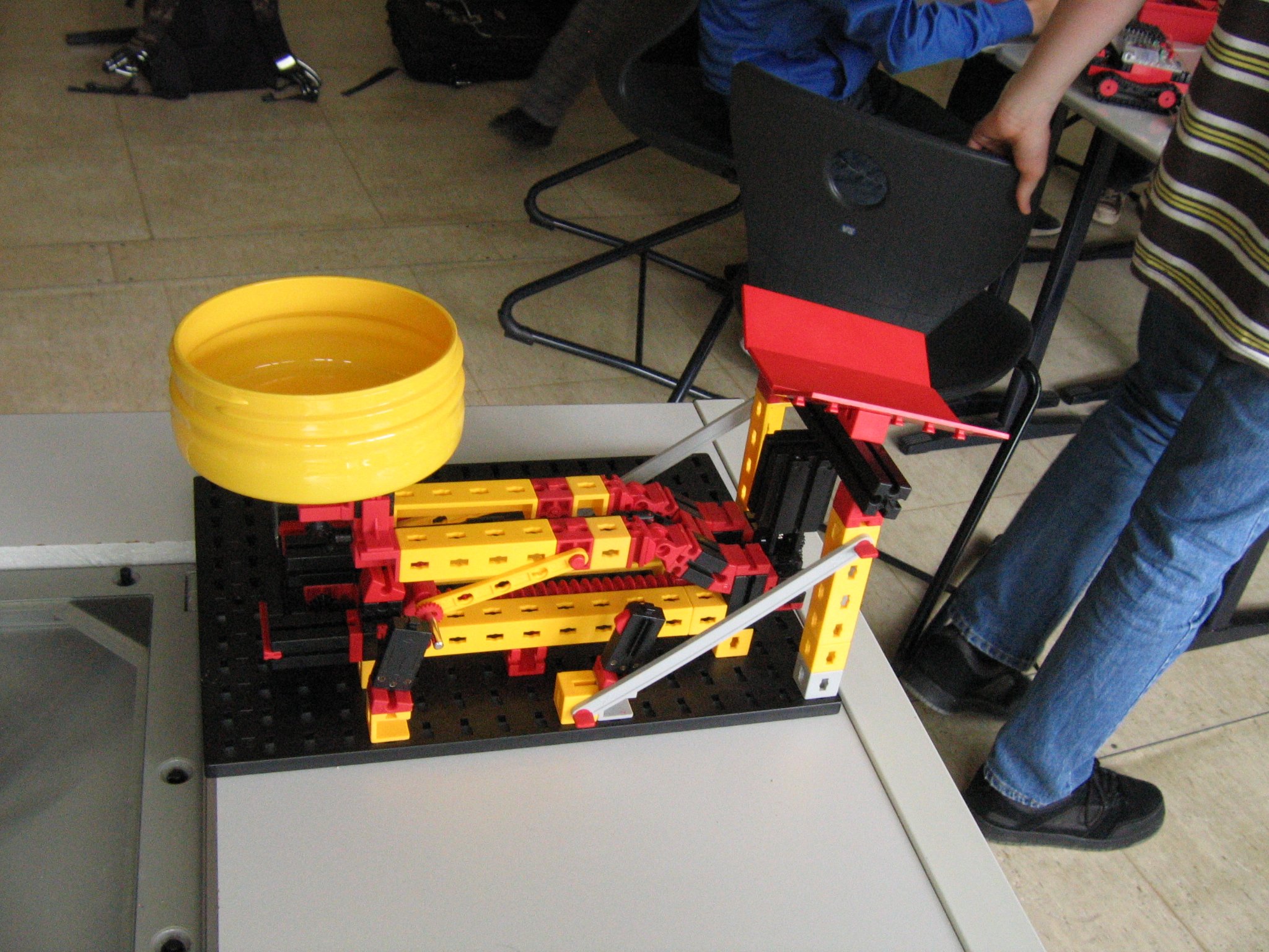 Im Rahmen dieses Kurses werden Maschinen gebaut, die mit Hilfe von Sensoren Informationen von der Außenwelt wahrnehmen und darauf mit Tönen, Leuchtsignalen oder auch Bewegungen (durch verschiedene Motoren) reagieren können. Die Kommunikation zwischen Sensor und Motor erfolgt mittels eines programmierbaren Interfaces. Planung, Konstruktion, Programmierung und Test wird von den Schülern an vorgegebenen Beispielen nachgestellt, aber vor allem an eigenen Ideen vollständig selbst durchgeführt.